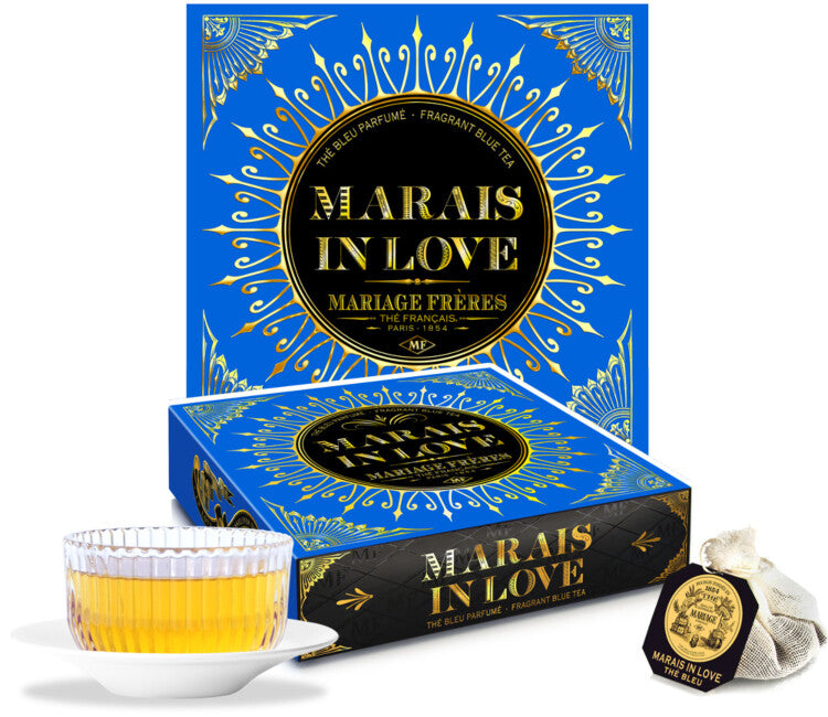 A captivating blue tea blend honoring the Marais district of Paris. Infused with red fruits, cinnamon, and rose petals, this tea delivers a fruity, vibrant character with golden hues when steeped. Each box contains 30 premium French cotton muslin sachets (75g total), crafted to capture the creative spirit and romantic essence of this iconic Parisian neighborhood.
