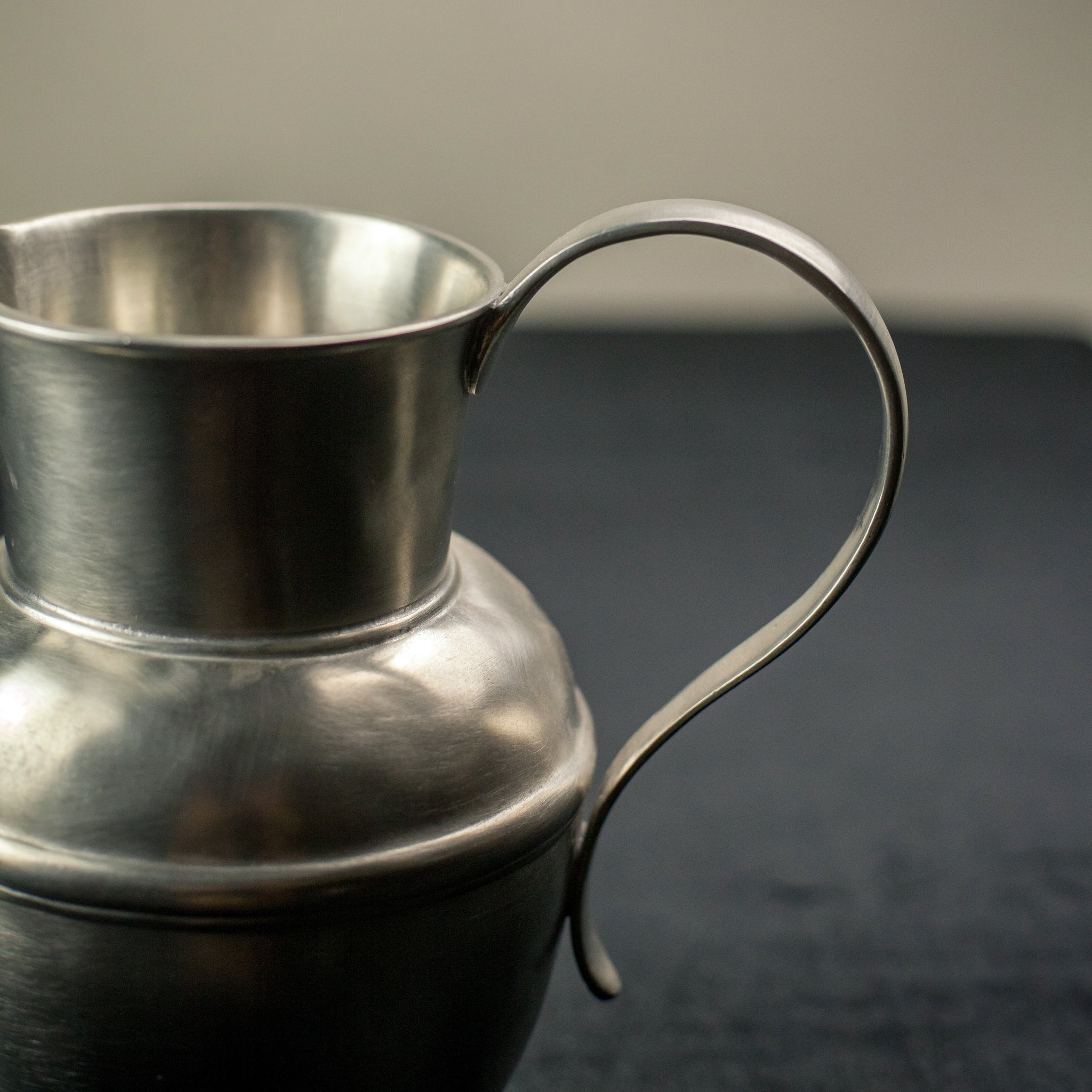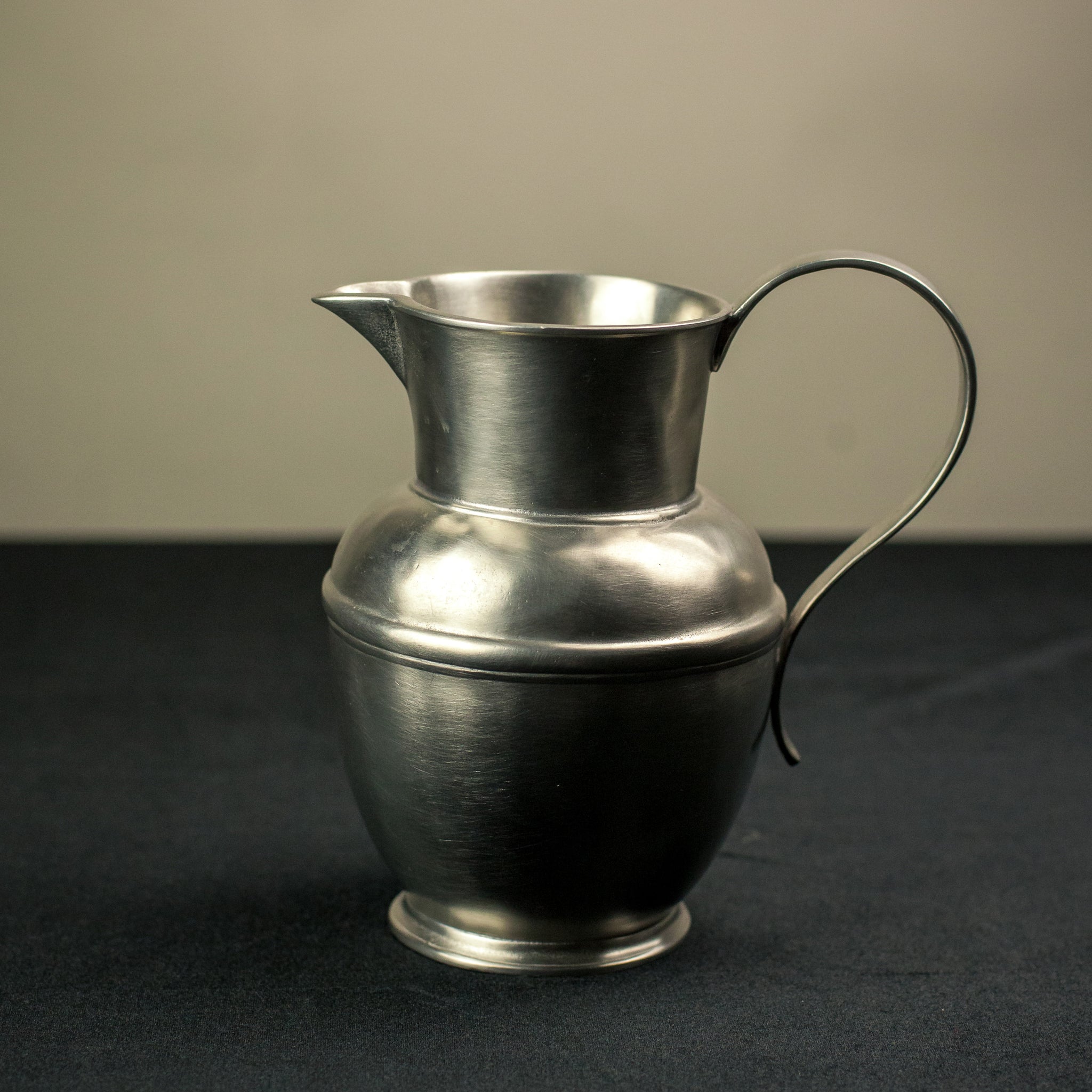 Handcrafted pewter pitcher with timeless design, perfect for serving water or displaying fresh flowers. Holds 44 ounces at 7.5" height. Requires minimal maintenance—simply hand wash in warm water and dry thoroughly to prevent water spots.