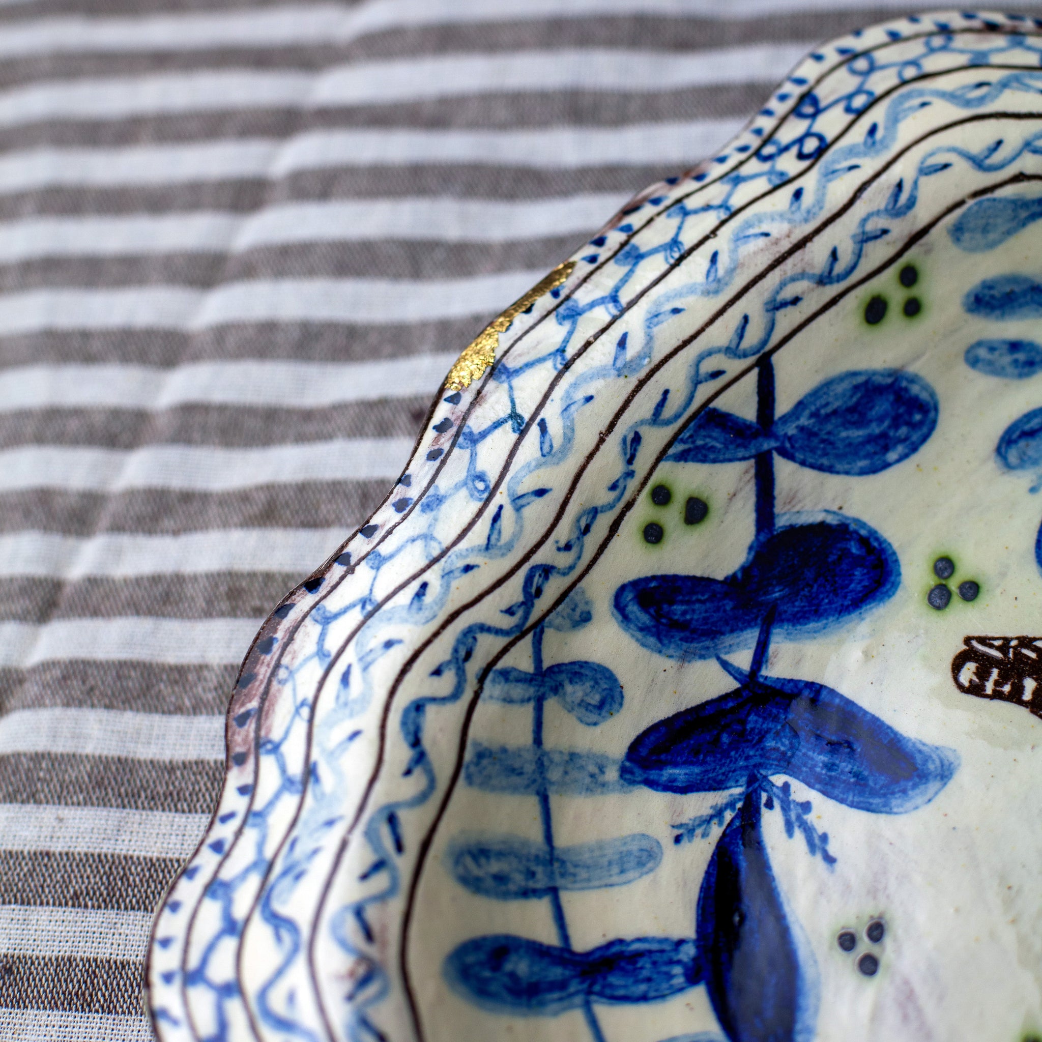 Created by Adrift Pottery, each piece reflects decades of expertise and cultural inspiration drawn from Japan and Wales. Utilizing traditional slipware techniques like sgraffito and raw oxides, the bowl is individually hand-built and painted with a natural color palette inspired by Pembrokeshire’s landscapes. Combining timeless craftsmanship with practical beauty, it is well suited for everyday use.