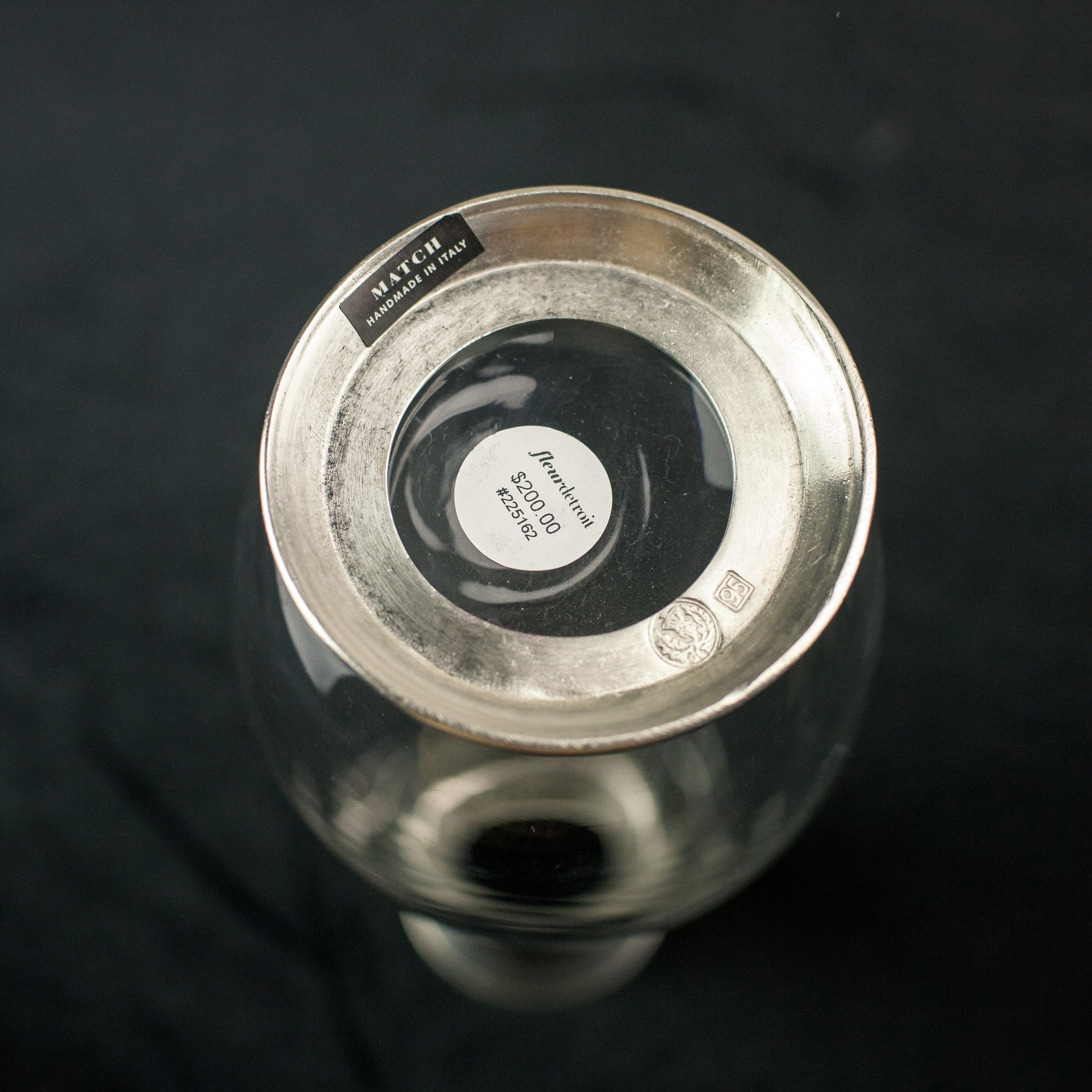 Elegant glass carafe accented with handcrafted Italian pewter collar. Holds 32 ounces at 9.5" tall, ideal for serving wine, water, or juice. Hand wash the pewter collar in warm water and dry completely to maintain its finish.