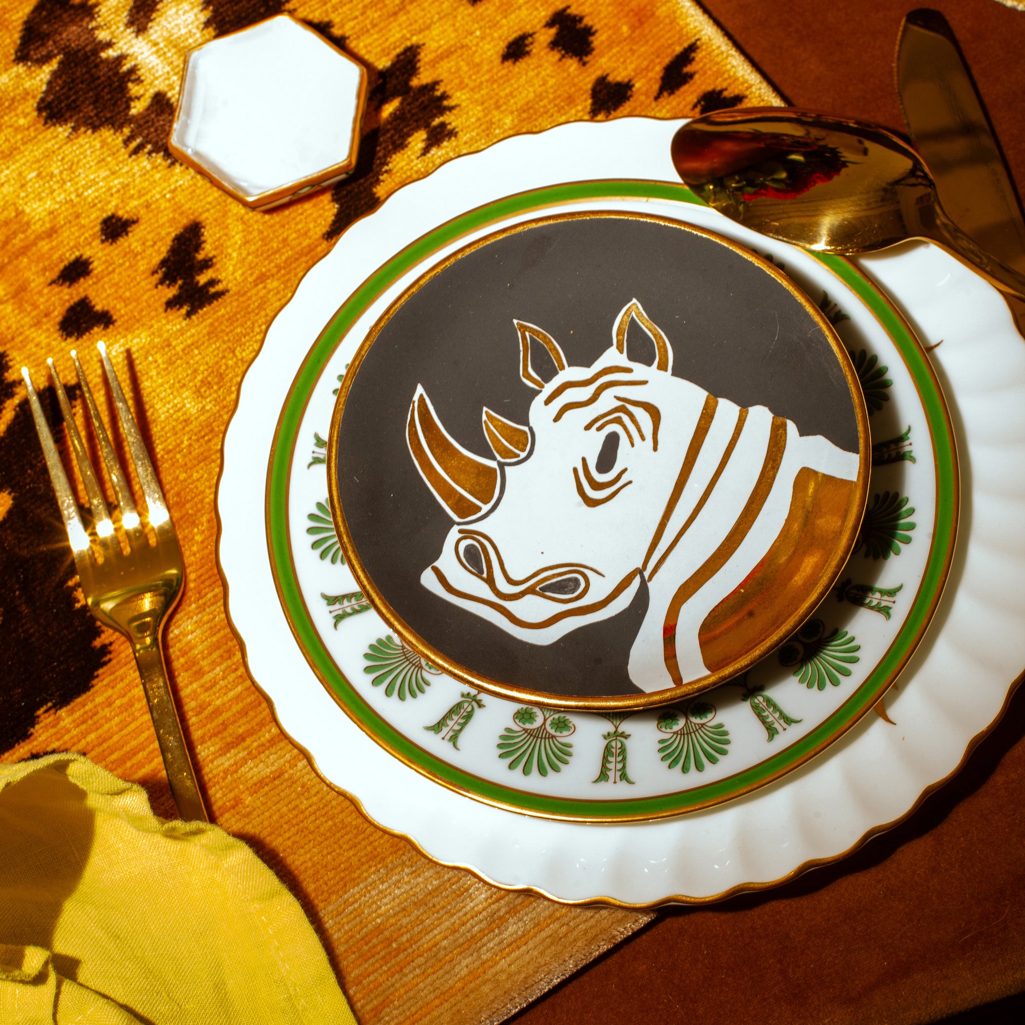 Waylande Gregory handcrafted ceramic bowl with ultra matte glaze and 22k gold details. Measures 4.5" diameter x 1.5" tall. Hand wash only with mild soap; avoid abrasive cleaners. Not dishwasher or food safe. Made in Peru.