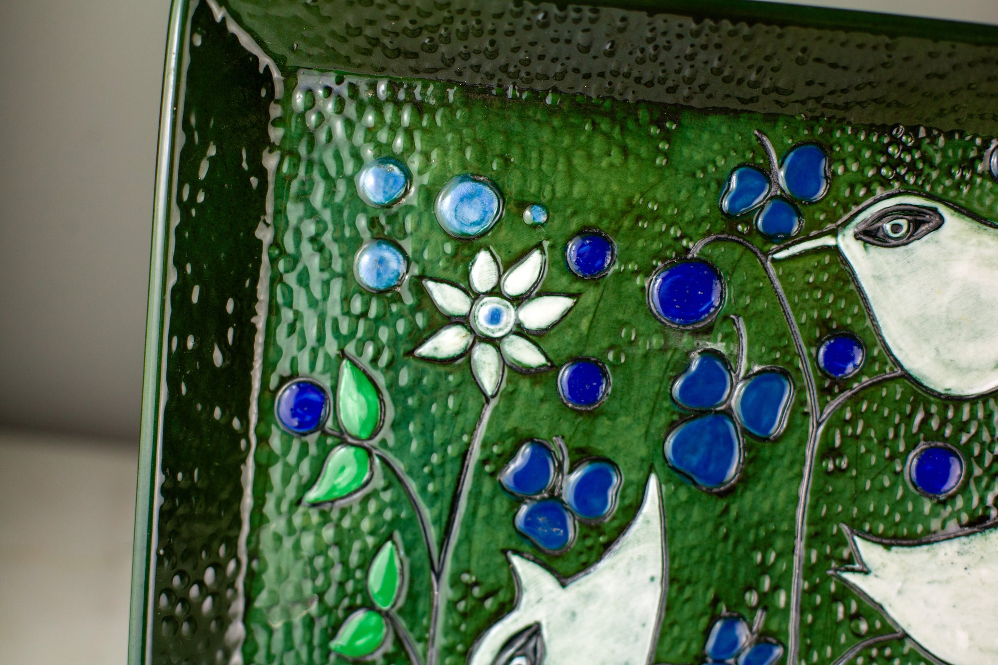 Birds Motif Green Wall Plaque - Sylvia Leuchovius 1970s