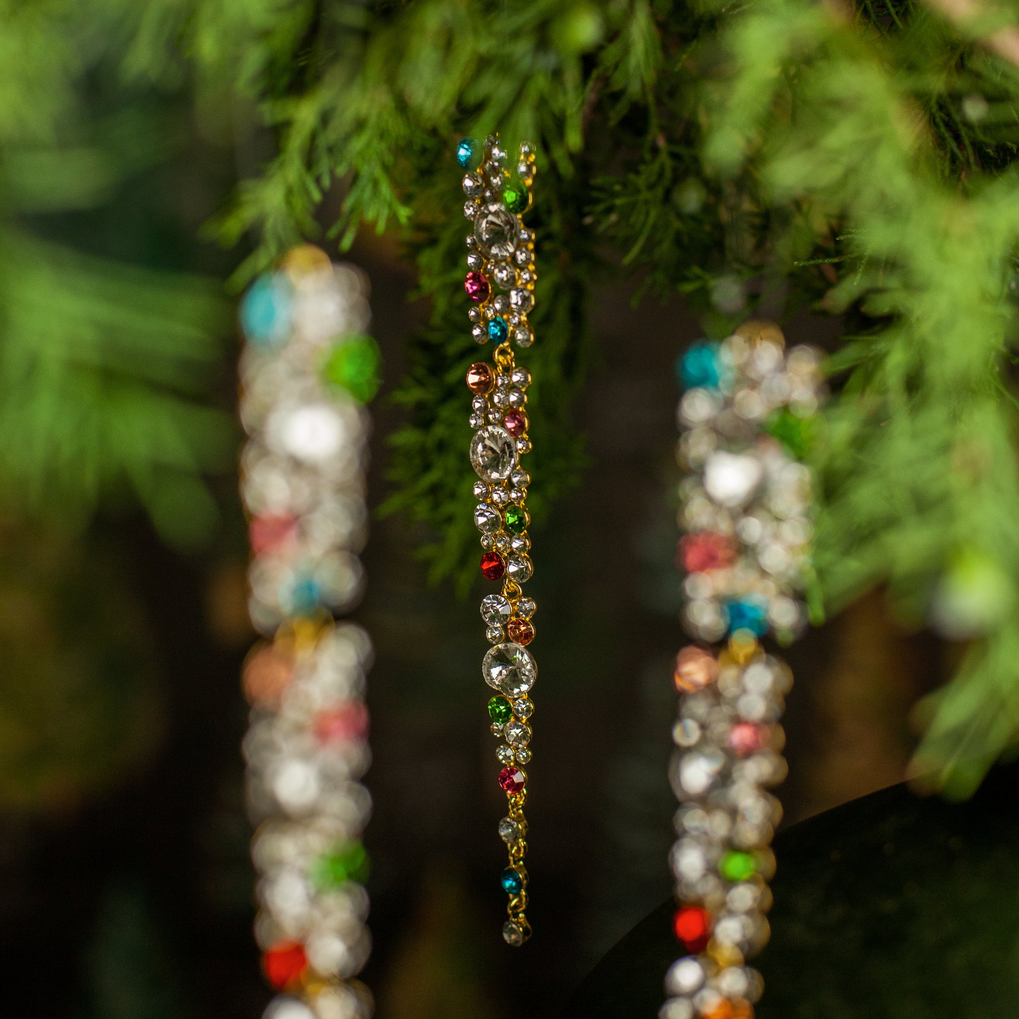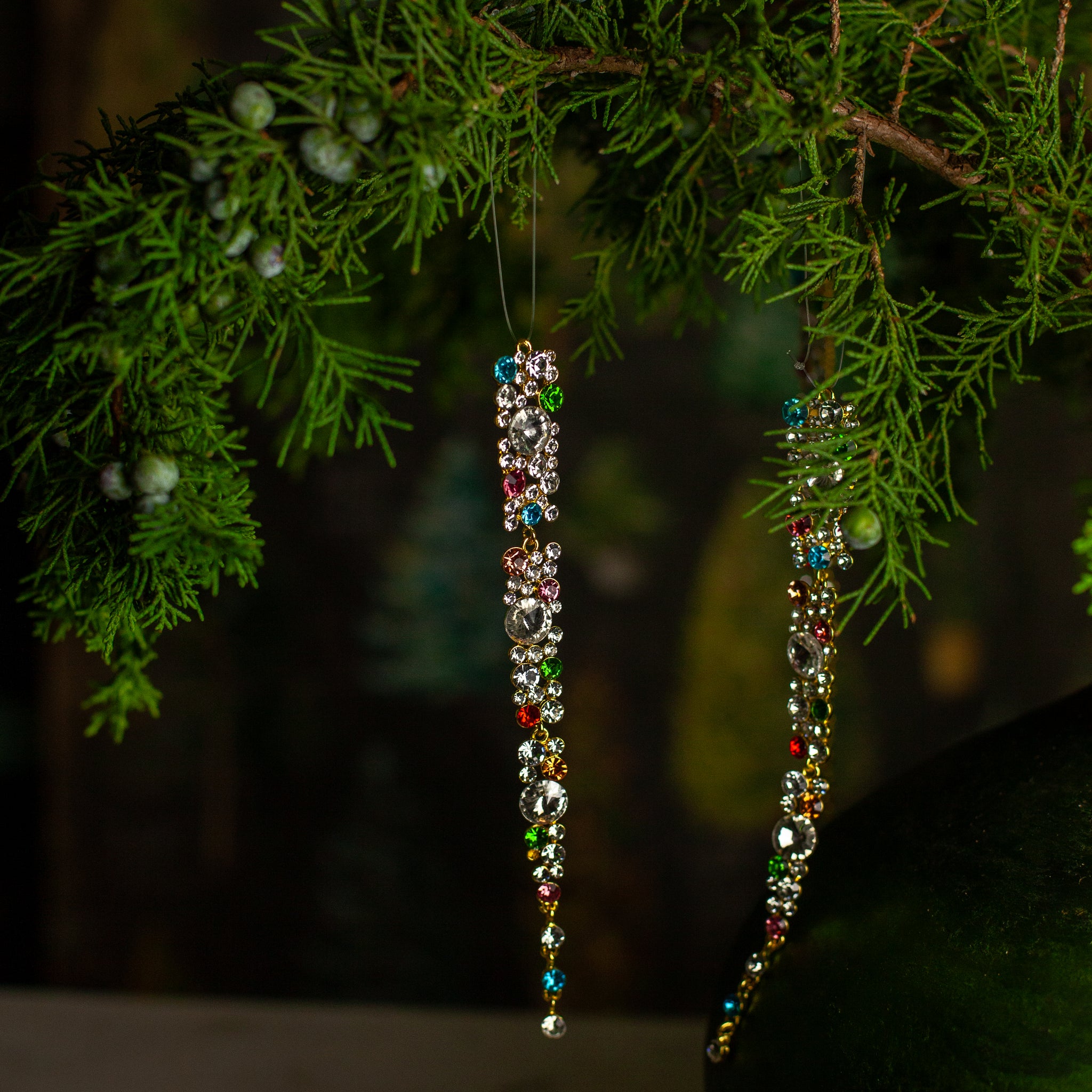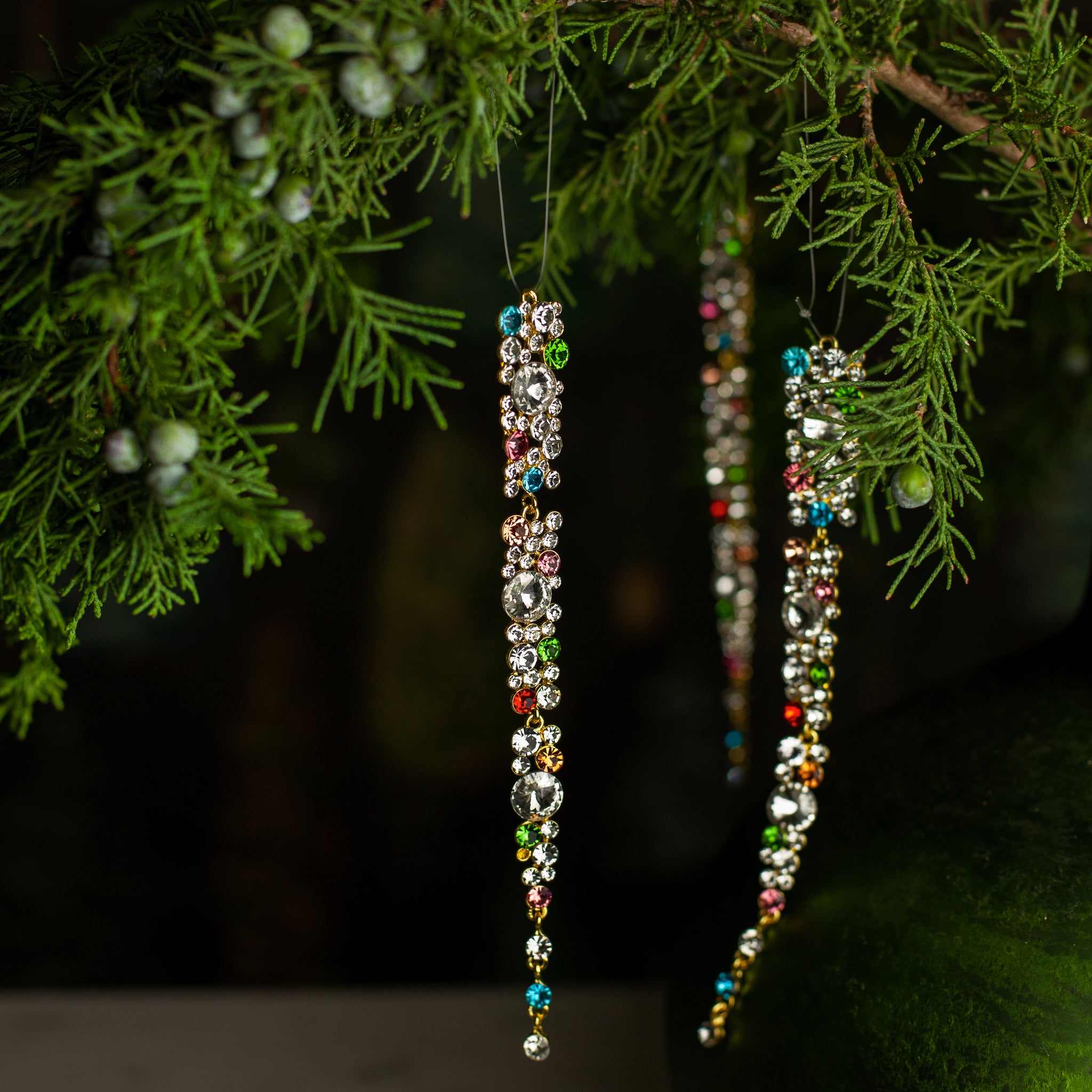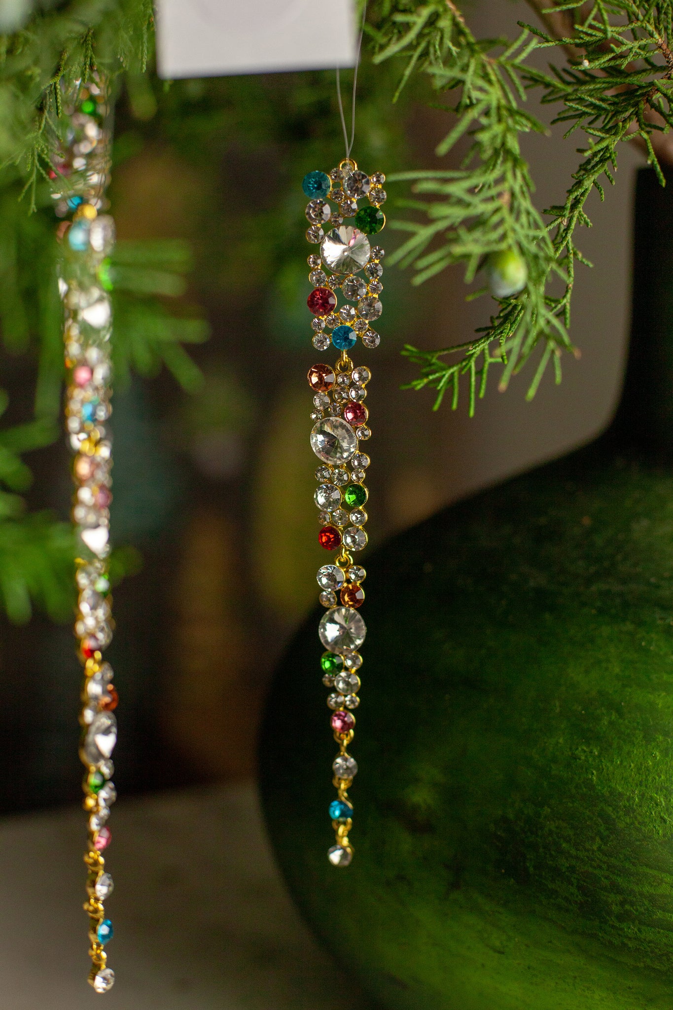 Elevate your holiday decor with the Multi-Color Jeweled Icicle Ornament Set of 3, designed to bring a sophisticated sparkle to your Christmas tree. Each icicle features a radiant array of colorful jewels that shimmer like fine jewelry, reflecting light beautifully from every angle. Expertly crafted with attention to detail, these ornaments offer a luxurious and vibrant accent, transforming your tree into a dazzling display of festive elegance.