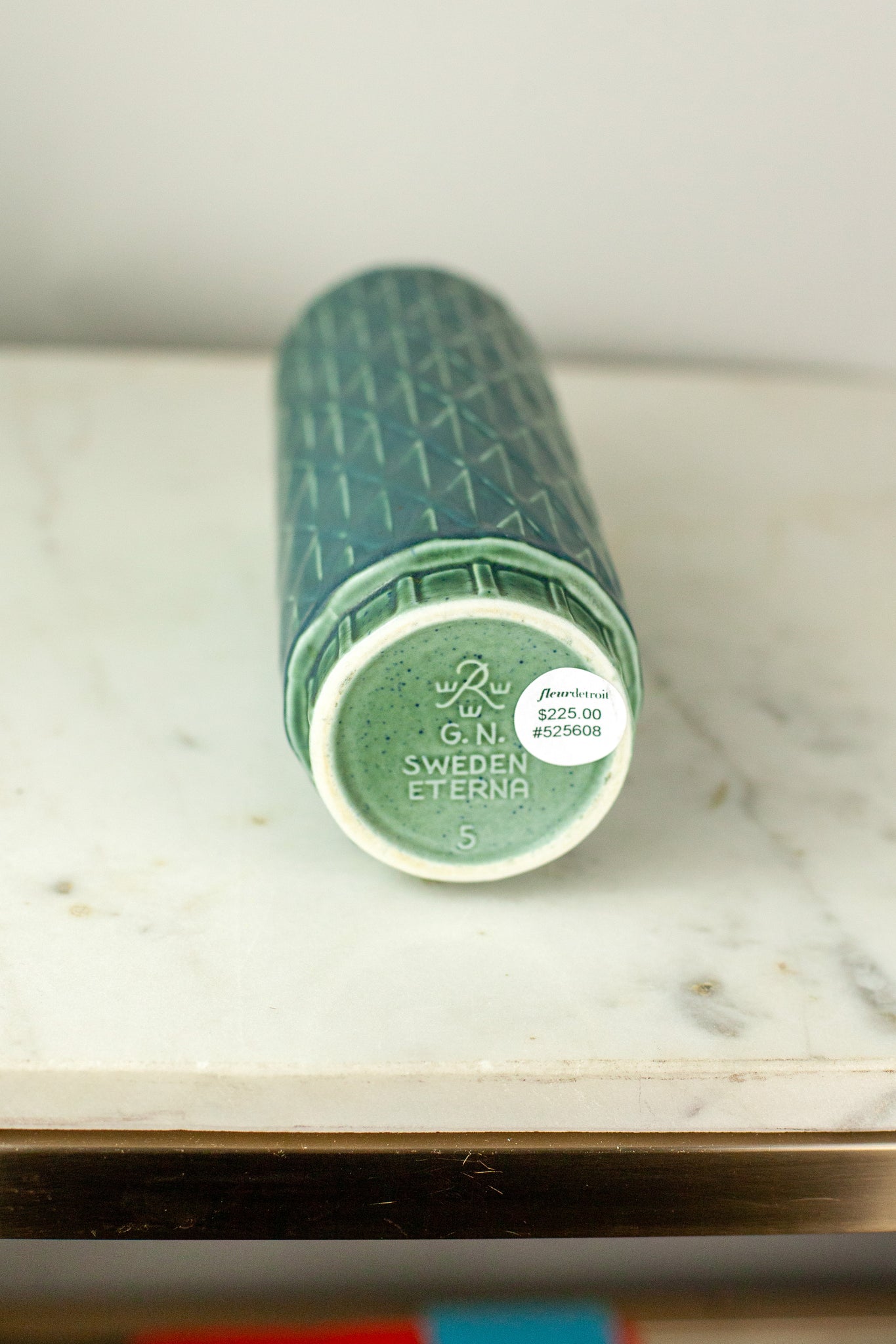 Elevate your home decor with this stunning Rörstrand Eterna Green Cylinder Vase, a true collector's piece from 1964.